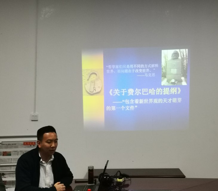 本网讯:3月21日下午18时,球速体育邀请湖北大学球速体育王昊讲师开展主题为“《关于费尔巴哈的提纲》之启示与当代老员工人生价值的实现”学术讲座。本次学术讲座在球速体育会议室北2-308进行,球速体育教师代表、马克思主义经典原著学习兴趣班学员40余人参加。
