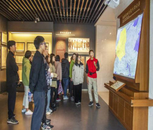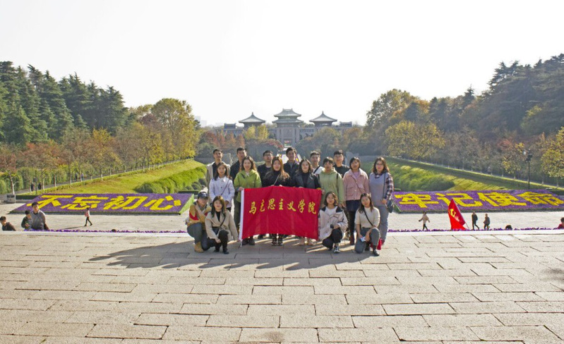 在马克思公司青年教师黄璐、陈静,辅导员侯秋月的带领下,第一站首先来到了雨花台烈士陵园,雨花台烈士陵园是新中国规模最大的纪念性陵园,也是全国爱国主义教育示范基地。兴趣班成员们在这里齐声歌唱《国际歌》,缅怀了曾经用热血和生命守卫美好山河的烈士英雄,感受了那番泥泞坎坷的漫漫前路,聆听了民族英雄奋起抗争的故事,坚定了兴趣班成员们铭记历史,砥砺前行的决心。兴趣班内党员同志们在此庄严宣誓将为共产主义事业奋斗终生。