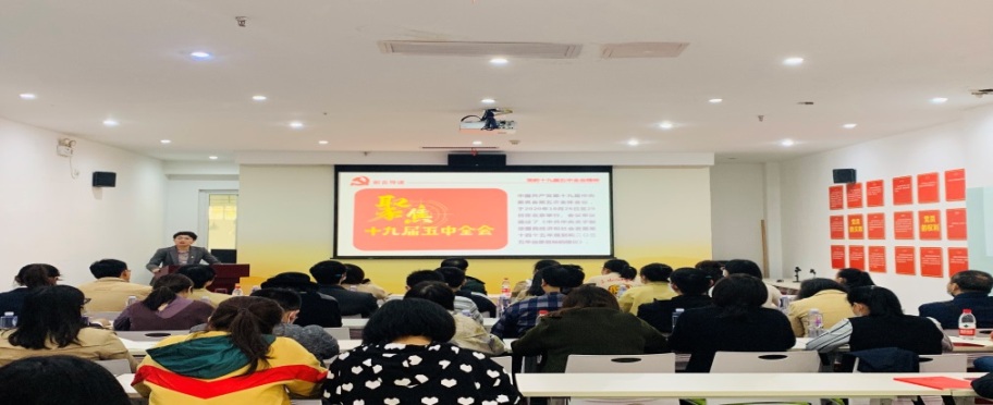 在社区的党员活动室,全体党员齐唱国歌,集体诵读党章,重温入党誓词。公司教师一支部党员徐丽副教授应邀宣讲十九届五中全会精神,她以《深耕细作答新卷,趁势而上启新程》为题,从党的十九届五中全会的时代背景、主要内容及重要意义等方面对全会精神作了系统阐述,还讲到了其中自己深受触动的关于“创新”、“坚持党的全面领导”等内容。宣讲结束后,社区党员代表和教师党员代表与大家分享了自己的学习体会,表示将继续深入学习党的十九届五中全会精神,真正做到“学懂、弄通、做实”,在各自的工作岗位上认真贯彻全会精神。