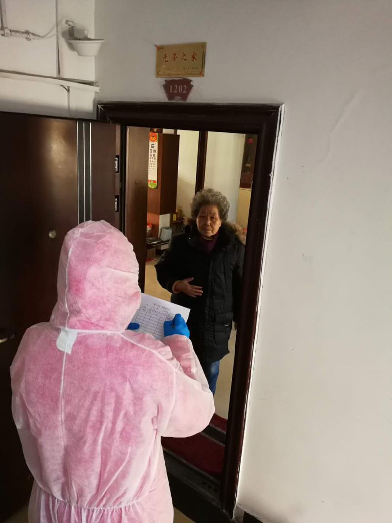 为了进一步确保不遗漏一例确诊疑似病例,社区安排志愿者入户排查,当小区网格员告诉大家需要逐一敲门,检查居民体温时,她的内心也是害怕的,在网格员分配各位志愿者负责的单元门栋时,她看到下沉的志愿者里她最年轻,于是自告奋勇的选择了小区里确诊病例最多的门栋,和一位男志愿者一起逐一敲门排查,在排查过程中,大多数居民都是很害怕开门的,但是,有一家居民敲门时却不大一样,她敞开大门,是一位老太太,她神色有些慌张,告知她的老伴咳嗽了4、5天,吃药没有好转,打120,120让她联系社区,而社区她联系不上,紧急向志愿者求助,获知了这个情况的陈思思,立刻记录下老人的身份证号和联系方式以及姓名,迅速报给了网格员,并在结束了一天辛苦工作后,几次提醒网格员和社区这个老人情况的危机,最终在社区的努力下,当晚就把老人送到了医院,小区第二天就公告了该老人为疑似病例,而在3月7日的早上,陈思思获知被救助的老人已病逝,心理五味杂陈,那是第一次切身感觉到这次疫情中生命的脆弱和无助,也深刻体会到作为社区志愿者的责任与担当。在那次入户排查中真的发现很多老人都需要帮助,有老人急需温度计,陈思思当天登记了情况,在第二天给老人送温度计的时候,老人感动的说了好多次谢谢,那一刻真的感到这些社区志愿者的力量虽小,但真能帮助到很多人,身体虽然疲惫,心理却是充实而坚定的。