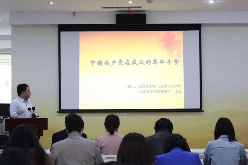 党课由球速体育中国近现代史纲要教研室主任王晨主讲,他以《中国共产党在武汉的革命斗争》为题讲述了党中央及习近平总书记对历史学习的重视、武汉光荣的革命传统以及武汉共产主义运动史。特别讲到了武装起义与保路风潮、武昌首义、收回汉口英租界运动以及中共五大、八七会议等一系列重要历史事件,梳理了近代以来仁人志士和革命先辈在武汉的奋斗历程。一张张老照片、一个个鲜明的人物,让在座的党员们重温了那段艰难的革命岁月。党课结束时,王晨老师谈到:“我们现在的幸福生活是老一代无产阶级革命家艰苦奋斗而来的,要重视党史的研究、传承与宣讲,特别是面向青年员工的教育和宣讲。要从党的奋斗历史中汲取更多的精神力量,不忘初心,牢记使命。