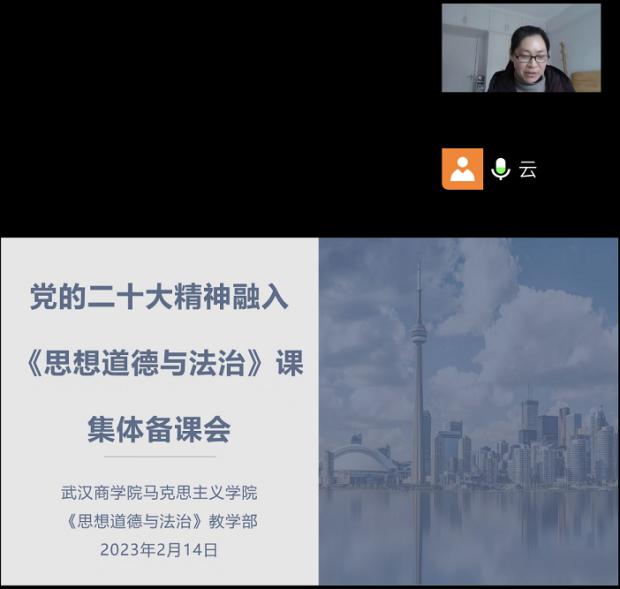 “党的二十大精神融入思想道德与法治课”集体备课会于2月14日以线上方式举行。备课会上,各位教师从党的二十大精神融入思想道德与法治课的重难点、结合点、方式方法等方面做了阐释,教学部主任高凌云博士总结时希望大家在教学中从三个方面下功夫:第一、摸清学情。要结合员工专业特点、知识背景和思想状况,用员工听得懂的语言,灵活设计教学专题,关注和回答员工提出的问题。第二,深度钻研2023年新版教材和二十大报告文本,找到二十大精神与教学内容的有机结合点。讲准、讲活、讲精、讲实、讲透党的二十大精神,做到真学、真懂、真信,用透彻的理论说服员工。第三,将党的二十大报告中涉及到的新提法体现在教学课件和教案中,切实做到与时俱进。