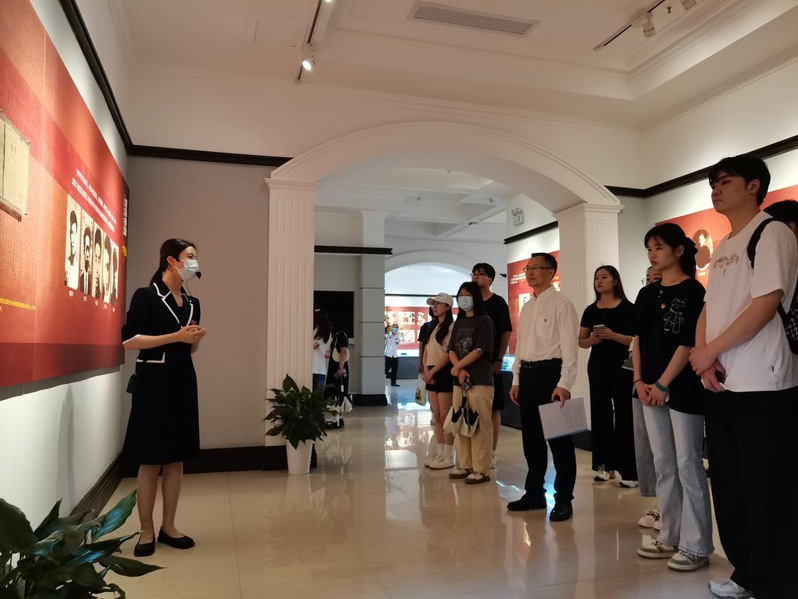 为更好感悟中国共产党人的理想信念,全体师生来到纪念馆一楼大厅,在党旗前重温入党誓词。随后,在讲解员的带领下大家深刻学习了解了会议通过的《告全党党员书》、《最佳农民斗争的决议案》等重要文件,并观看了全部会议参加者的照片及其生平简介。沿着深色红木楼梯登上二楼,映入眼帘的是一间十多平方米的小屋,其上悬挂着邓小平同志亲笔题名的“八七会议会址”牌匾。讲解员告诉大家,这里是当年召开八七紧急会议的会场,会议召开时正值酷暑,为了不泄露消息,先辈们紧锁门窗,在这间狭小的屋子里开了一整天的会,饿了就吃干粮,渴了就喝凉水,累了则就地坐下休息……